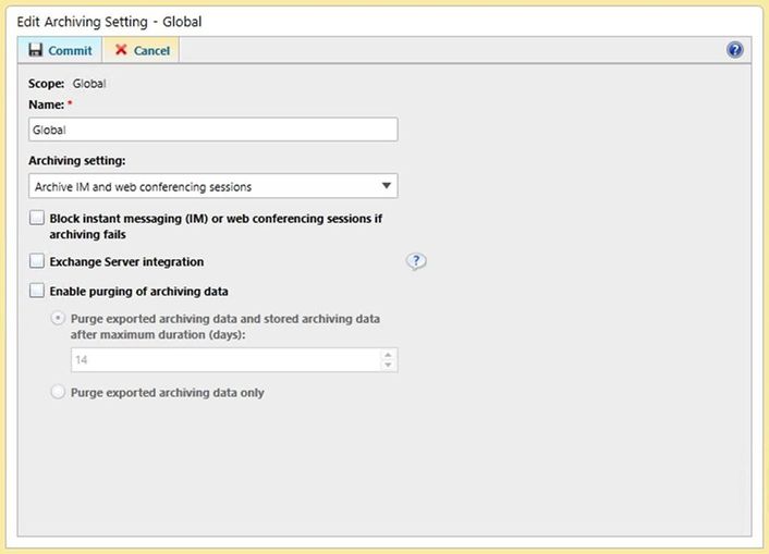 Organizations often chose to enable IM Archiving for multiple reasons, while some may be for record keeping purposes, others may have a regulatory /compliance requirement to ensure IM Archiving is occurring for every IM and Web-Conferencing Session.