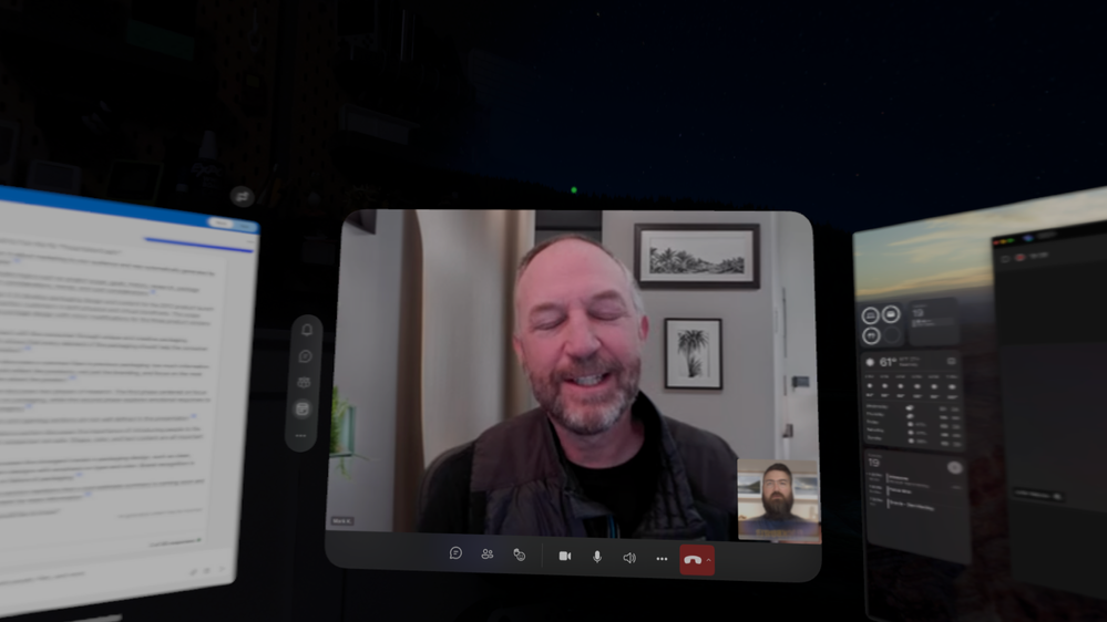 What John Moore saw when wearing the Vision Pro during our Teams meeting recording; you can see I was closing my eyes envisioning that I, too, was wearing a Vision Pro headset ;).