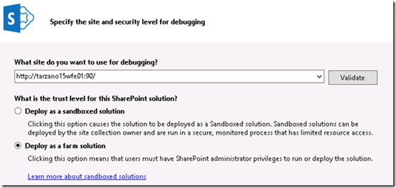 Provide your MySite Host URL and choose to deploy this as a farm solution.