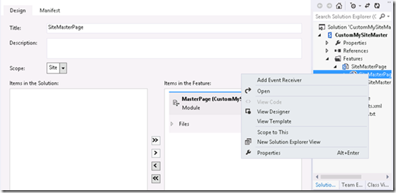 Create a SharePoint 2013 Empty project in Visual Studio 2012 and give it a name (e.g., ChangeMySiteMaster).