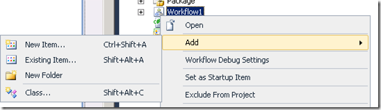 3. Once the basic workflow has been built and compiled, we can move to the next step of adding custom ASPX forms to it. So, select the workflow item in the project created and ‘Add New Item’.