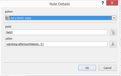 1. field1 = substring-after(userName(), "|")