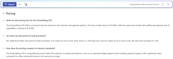 Once published, your FAQ is ready to share via email with one click. Every interaction makes us smarter—use the built-in feedback tool (👍/👎 and add your comments) to help us improve Copilot's responses and elevate the experience.
