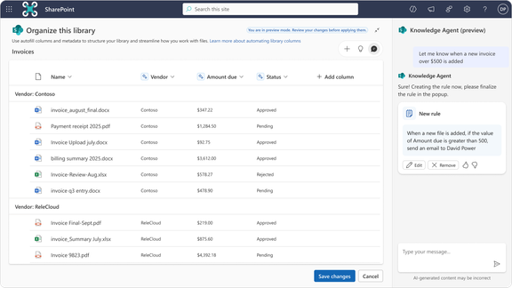 • Gives AI the context it needs: The agent intelligently tags and classifies files with auto-filled metadata. Starting next month, Copilot and agents will be able to reason over this data, enabling them to better distinguish between similar documents, driving higher-quality answers.