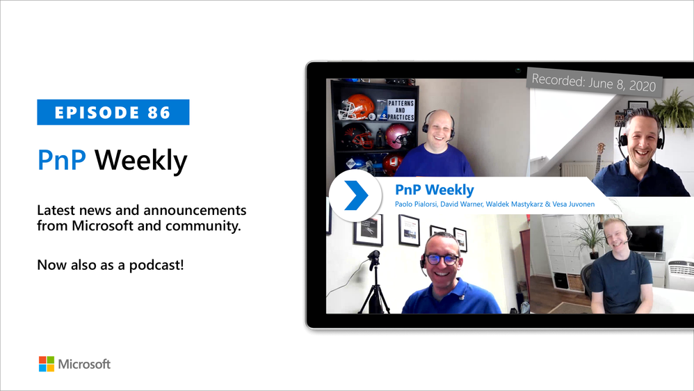 “Shipped is better than perfect”, and any size contribution is a welcome contribution. Sharing is caring. Additionally, in this episode, 15 recently released articles from Microsoft and the PnP Community are highlighted.