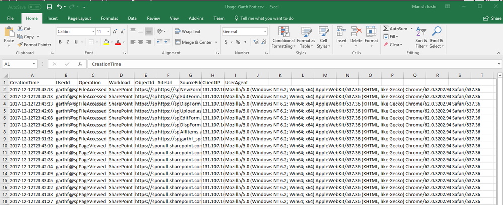 $ConvertedOutput | Select-Object CreationTime,UserId,Operation,Workload,ObjectID,SiteUrl,SourceFileName,ClientIP,UserAgent | Export-Csv $OutputFile -NoTypeInformation -Append