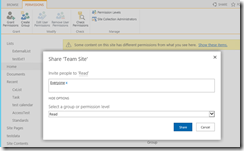 when adding a user from _layouts/15/user.aspx page, like this (adding “everyone” to a team site with explicitly specifying Read permission):