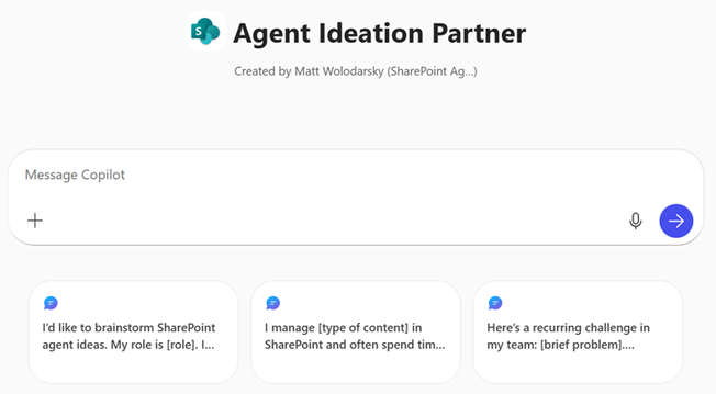 You can also create a meta-agent called the Agent Ideation Partner in your tenant to help users discover high-value scenarios aligned to their roles, goals, and context.
