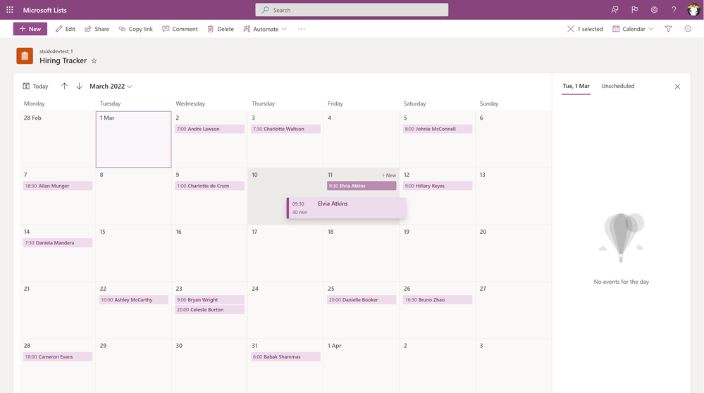 Now it's easy to reorganize list items in a calendar view. Users will be able to reschedule items - changing the date - by dragging and dropping them from one day to another, or by pulling an item from the 'Unscheduled' pane that appears on the right, within Calendar view.