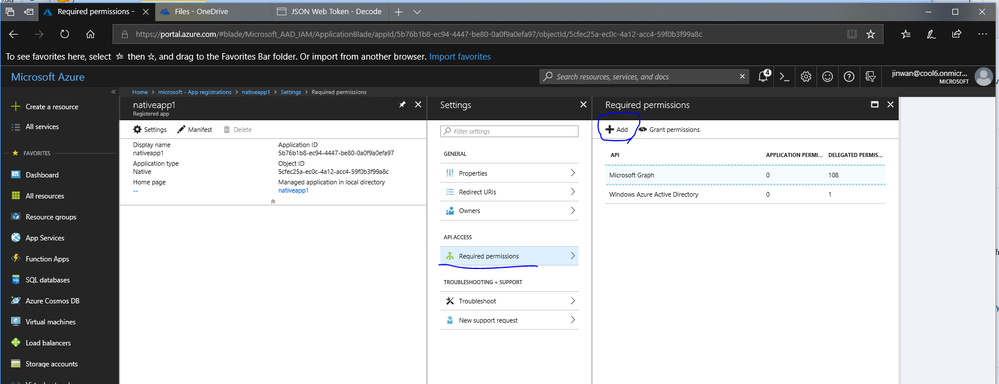 Step I, Create a native app in Azure portal and give permissions, for Graph API.