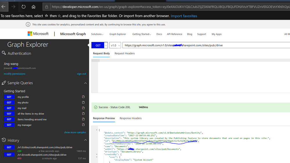 First, Use following url format in Graph Explorer to retrieve the drive id: