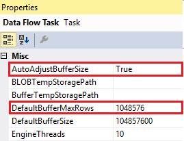 On SQL Server 2016, looking at the default SSIS Data Flow Properties you see that the default value for “DefaultBufferSize” is 10MB and the DefaultBufferMaxRows is 10,000.