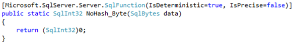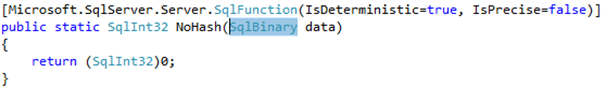 At this point, it seems natural to ask if there is a way to write our own hash function. Fortunately, SQL server provides a great way to extend the engine with new functionality: SQLCLR.