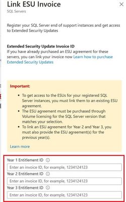 A. 1年目および2年目の購入時に Azure Arc にすでに登録済みの場合は、既存の登録済みのインスタンスに対し、新しく購入した請求書IDを紐づけることで Azure Arc上の ESU 有効期限が更新されます。
