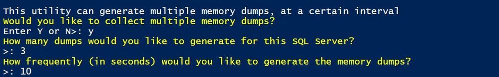 Want multiple memory dumps? Select 'y' and specify how many and at what interval.