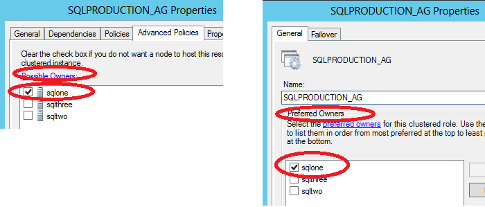 - The current primary replica is always set as the availability group resource's Possible Owner and also as a Preferred Owner.