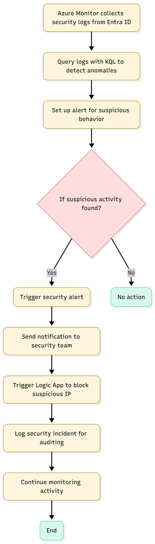 This workflow demonstrates how Azure Monitor can detect suspicious activity, such as repeated failed login attempts, and automatically trigger security responses to mitigate threats.