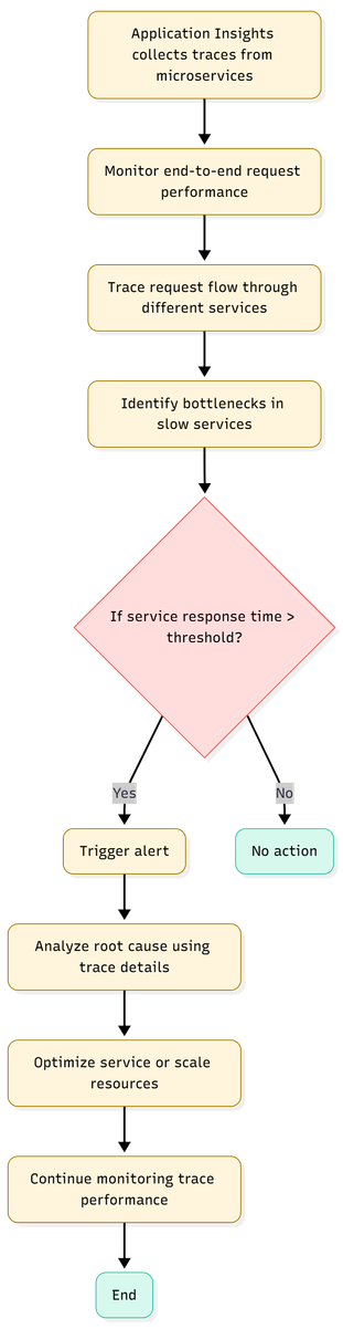 For example, if a customer request is taking too long to process, Application Insights can trace that request through different services, helping you identify which service is causing delays or failures.