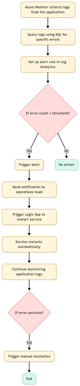 This workflow automates the detection of recurring application errors and can trigger actions such as restarting services, ensuring minimal downtime and quick resolution.