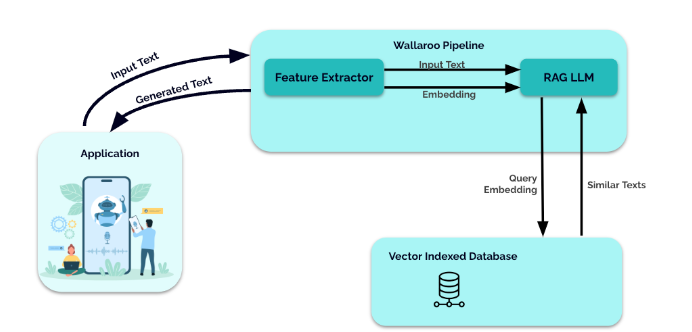 - Input text first passes through the feature extractor model that outputs the embedding. This is a list of floats that the RAG LLM uses to query the database for its context.