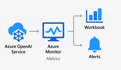 Azure OpenAI Service → Azure Monitor (Metrics) → Portal Workbooks + Alerts.