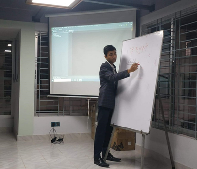 Muhammad giving a lecture during a Python programming workshop