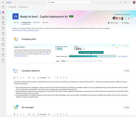 This week at Ignite, we announced several new features coming to Viva Amplify echoing our commitment to providing a centralized platform for orchestrating and managing campaigns and communications.