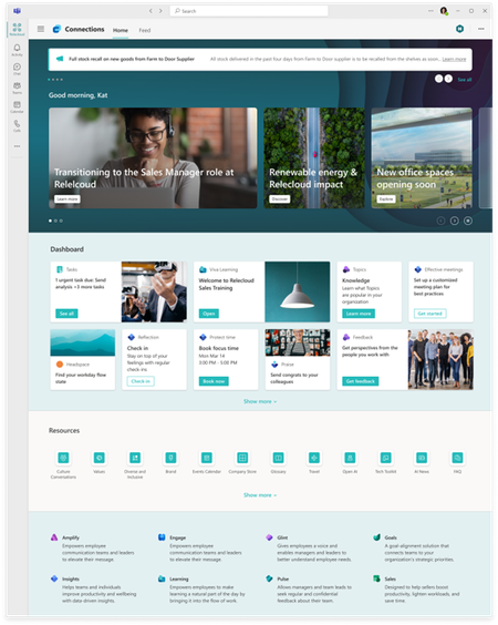 The refreshed Viva Connections landing experience offers a more intuitive layout and introduces several requested new features including branding capabilities, sending announcements, and support for ...
