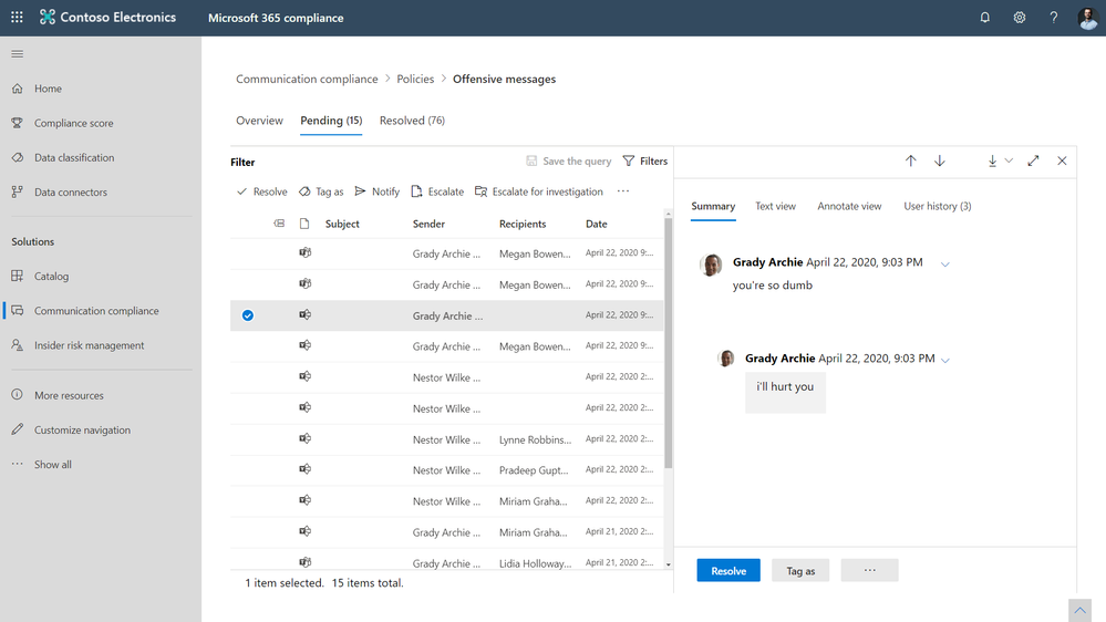 The adoption of Communication Compliance continues to increase at a rapid pace as organizations look to leverage the built-in machine learning classifiers to quickly identify and take action on code of conduct policy violations in company communications channels. Today, we are excited to announce the ability to identify and remediate inappropriate conduct in Yammer private messages and community conversations.