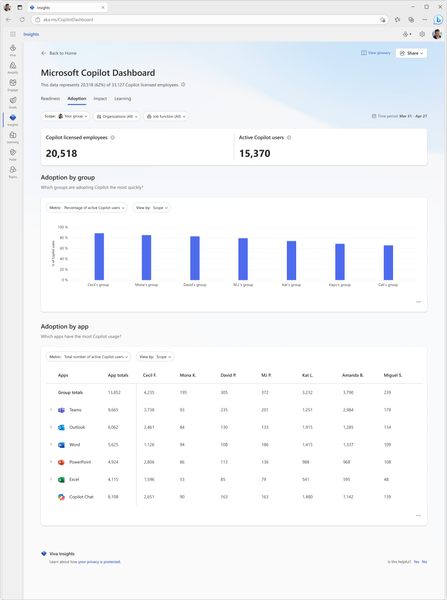 As previously announced, the Microsoft Copilot Dashboard is now available as part of Copilot for Microsoft 365 licenses and no longer requires a Viva Insights premium license. We are now rolling out ...