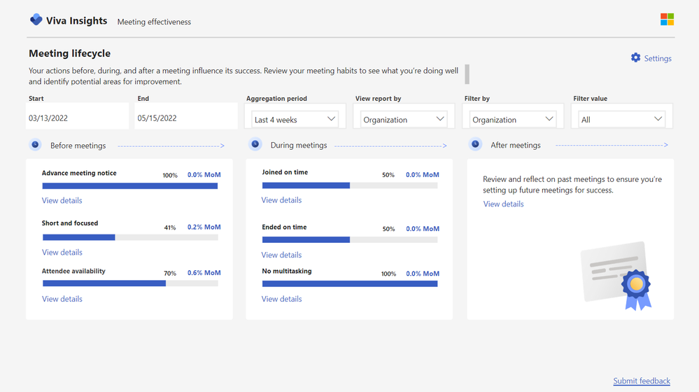 We look forward to your feedback! Stay tuned to the Viva Insights Community to keep up with the latest news about Viva Insights enhancements.