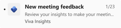 We’ve added a new update for meeting effectiveness surveys. Previously, there wasn’t a way to let users know they had survey feedback. Now, if you’re using meeting effectiveness surveys, you’ll get Teams notifications for when you have new feedback. These notifications take you to the Productivity tab in the Viva Insights app in Teams, where you can review your survey responses.