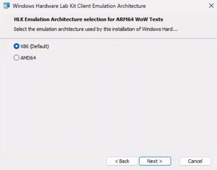 We’ve introduced a small update to the HLK ARM64 Client setup experience by defaulting the emulation test setting to x86. This change aligns ARM64 client testing more closely with the existing AMD64 workflow, allowing partners to use a single, unified playlist for ARM64 testing, including both full and emulation scenarios. By reducing the need to manage multiple architecture specific playlists, we’re making it faster and easier for partners to stand up an ARM64 emulation test environment, minimize playlist configuration overhead, and focus on validating driver quality. In the February refresh, partners can point to x86 as default emulation during automated script setup and enjoy the benefit of the single playlist deployment; in the following quarterly refresh, the default UI change will be available as well.