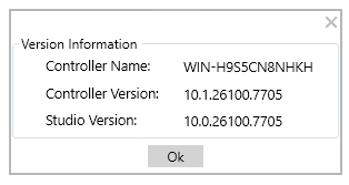 The HLK Studio version information can be located by clicking ‘About’ in the upper right corner of studio.