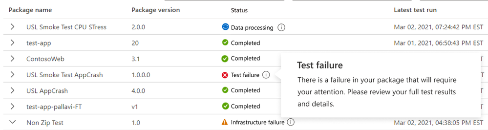 - Test failure: There is a failure in your package. Your full test result details are available for you to review.