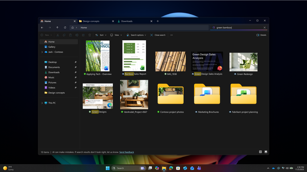 - Find what you need, simply by describing it with improved Windows search. This semantic search capability enables you to find the right file without needing to remember exact file names or words in file content. Improved Windows search spans both local files and now cloud-based Microsoft 365 files, improving discoverability. This is gradually rolling out to commercial Microsoft 365 Copilot customers on Copilot+ PCs.