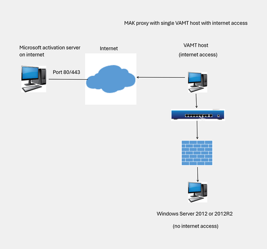 A diagram of a MAK proxy with a single VAMT host with internet access.