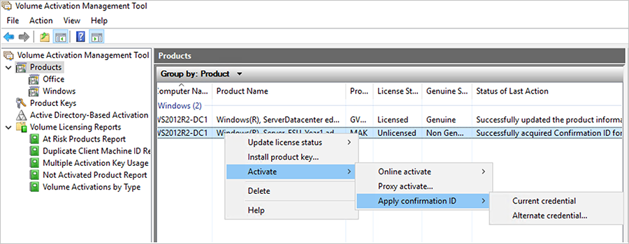 Activate ESU keys online with VAMT