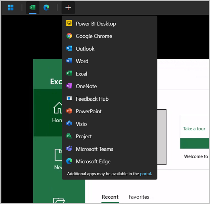 Screenshot of the Remote App Launcher dropdown menu from the toolbar in Windows App on web.