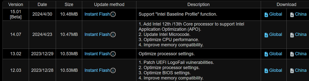 BIOS version is 14.02. Apparently revoked No notification about this CVE. Just the regular and expected updates resolving around the 13th and 14th gen Intel CPU K-SKU power limit, CPU aging and instability controversy.