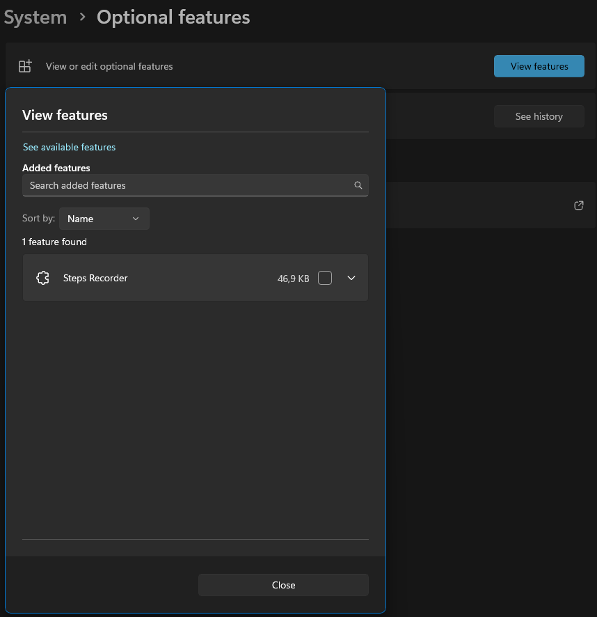- Select View features next to “Add an Optional feature” option at the top.