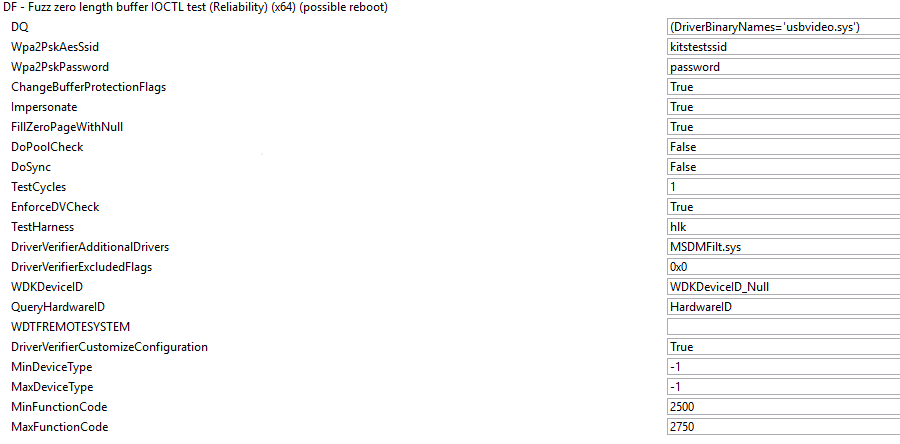 - A Fuzz test is used to generate the IOCTLs and WMI IRPs for DUT(s).