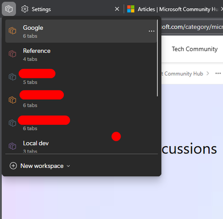 Noticed that the past couple of Dev builds have a broken media player where the theme is all black and it also looks like the layout is bugged, see screenshot below. I've also submitted feedback with a screen recording but wanted to see if anyone else was experiencing this.24Views0likes0CommentsMultiple Tabs Added to Incorrect Workspace