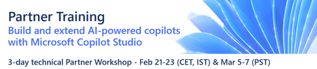 Microsoft Copilot Studio lets you create powerful AI-powered copilots for a range of requests—from providing simple answers to common questions to resolving issues requiring complex conversations. Learn how you can build and extend these copilots, boot their capabilities with AI and extend them to perform actions, and provide answers for your copilot users. This three-day virtual training experience includes two-to-four hours a day of structured instructor-led training theory, hands-on labs to help develop specialized skills, and live Q&A with technical experts. Enroll today at: https://aka.ms/CopilotStudioPartnerTraining Note: Either register or sign into the Depth Training page, and then click on the Copilot Studio card to enroll, selecting the session appropriate to your time zone.ISV Success FAQ: Are their limitations for use of the Azure Sponsorship credits?