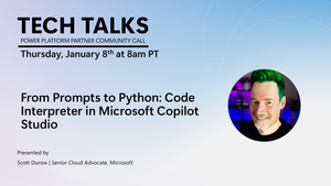 Join us on Thursday, January 8th at 8am PT as Scott Durow, Senior Cloud Advocate, Microsoft presents 'From Prompts to Python: Code Interpreter in Microsoft Copilot Studio'. Step beyond natural-language prompts and explore how the Code Interpreter unlocks deterministic, Python-driven logic inside Copilot Studio. This session walks through how agents can generate and execute Python code in a secure sandbox to create reliable outputs such as charts, enriched Excel or PDF files, and Dataverse insights. You’ll see how to enable the feature at the environment, agent, and prompt levels, and how to analyse and visualise data using both design-time instructions and Python generated on the fly by your agents. We’ll look at prompt-design best practices, key considerations, and how to make the most of the Python output inside your agent workflows. We hope to see you there! Call to Action: Click on the link to save the calendar invite: https://aka.ms/TechTalksInvite View past recordings (sign in required): https://aka.ms/TechTalksRecordingNEW RESOURCE RELEASE: Industry Solution Kits (ISK) now available!