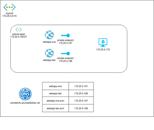 Hello everyone, I deployed two web apps and a virtual machine and configured the resources to use the same virtual network (myvnet). The (Windows) web apps have private endpoint connections configured with names in a private DNS zone "privatelink.azurewebsites.net". I can properly access the web apps from the virtual machine: The names [webapp-one / webapp-two].azurewebsites.net are resolved to the internal ip addresses of the private endpoints as the vm uses the nameserver 168.63.129.16. But the web apps cannot access each other. In the code I try a HTTP Get request from the webapp-one application to "https://webapp-two.azurewebsites.net". This does not work and as far as I debugged this problem it seems that the name resolution is working properly. Instead of the internal ip address I get the external address (13.69.xx.yy). Does anyone have an idea where to look? Thanks in advance, Matthiasdontmentionme1Jan 28, 2021Copper Contributor9.2KViews0likes2Comments