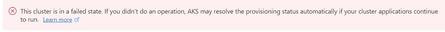 Hello Azure Community, I am facing an issue with my AKS cluster that is currently in a failed state. The cluster has been in this state for three days, and despite not performing any operations, the provisioning status has not resolved automatically. We have this cluster running for about 2 years, with services running. We stop this cluster when not in use and start when required. Last successful running state of cluster was on 9th of May 2024, and stopped on the same day after use. Again, tried to start on 14th May, from then cluster is in failed state. Screenshot shared for reference. Troubleshooting Steps Taken: Checked the status of the cluster in the Azure portal and CLI Reviewed logs of cluster, nodes not provisioned in node pool No able to restart or update the cluster I am seeking assistance from the community to help me troubleshoot and resolve this problem. Any advice, suggestions, or guidance would be greatly appreciated. Thank you in advance for your help.sharmila1310May 16, 2024Copper Contributor835Views0likes2Comments