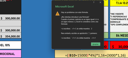 Estoy intentando modificar una formula que tenia antes unicamente cambiando lo que es la cantidad por la que se sumaba a la que tenia la anterior, lo demas de la formula esta completamente igual, pero por alguna razon me salta esa pestaña diciendo que hay algun problema con la formula, estuve buscando si hay algun tipo de error pero no lo encontre, inclusive llegue a copiar la primera formula original y no funciona aun asi, por mas que lo intento siempre me salta la misma advertencia y no me deja agregar la formula como es debido. cabe decir que la formula es la que esta abajo de la pestaña de advertencia y la celda "B10" es la de la cantidad de "300,000" que esta encima de los "354,000"11Views0likes1Commentmicrosoft excel import text file template