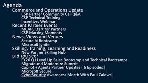 Microsoft invites you to our CSP Partner Enablement Series, where we’ve combined the CSP Community call and the CSP Technical Training call and into a single, streamlined call. This new format brings together high priority partner updates, technical/adoption enablement, and best practices into one cohesive experience, making it easier for partners to stay informed and prepare for change. You are welcome to access old calls or join future ones! CSP Partner Enablement seriesAl agregar un Partner University: Id. de correlación: fcb98f32-41a1-4dee-976c-42a0801ec868