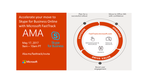 We are very excited to announce an upcoming opportunity to 'Ask Microsoft Anything' (AMA) about Accelerate your move to Skype for Business Online with Microsoft FastTrack! The AMA will take place on Wednesday, May 17, 2017 from 9:00 a.m. to 10:00 a.m. PT in the Accelerate your move to Skype for Business Online with Microsoft FastTrack AMA space. An AMA is a live online event similar to a "YamJam" on Yammer or an "Ask Me Anything" on Reddit. The Accelerate your move to Skype for Business Online with Microsoft FastTrack AMA will give you the opportunity to connect with members of the Skype for Business and FastTrack teams, who will be on hand to answer your questions and listen to feedback. Don't forgot to add the event to your calendar. We hope to see you there!EricStarkerMay 17, 2017Former Employee2.8KViews0likes1Comment